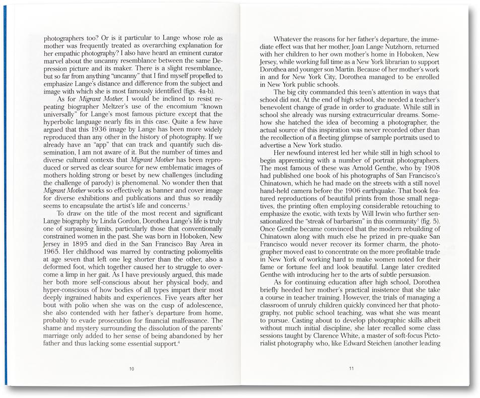 Sally Stein reconsiders Dorothea Lange’s iconic portrait of maternity and modern emblem of family values in light of Lange’s long-overlooked ‘Padonna’ pictures and proposes that ‘Migrant Mother’ should in fact be seen as a disruptive image of women’s conflictual relation to home, and the world. Stein is an American academic and cultural theorist living in Los Angeles. The interrelated topics she most often engages concern the multiple effects of documentary imagery, the politics of gender, and the status and meaning of black and white and color imagery on our perceptions, beliefs, even actions as consumers and citizens.