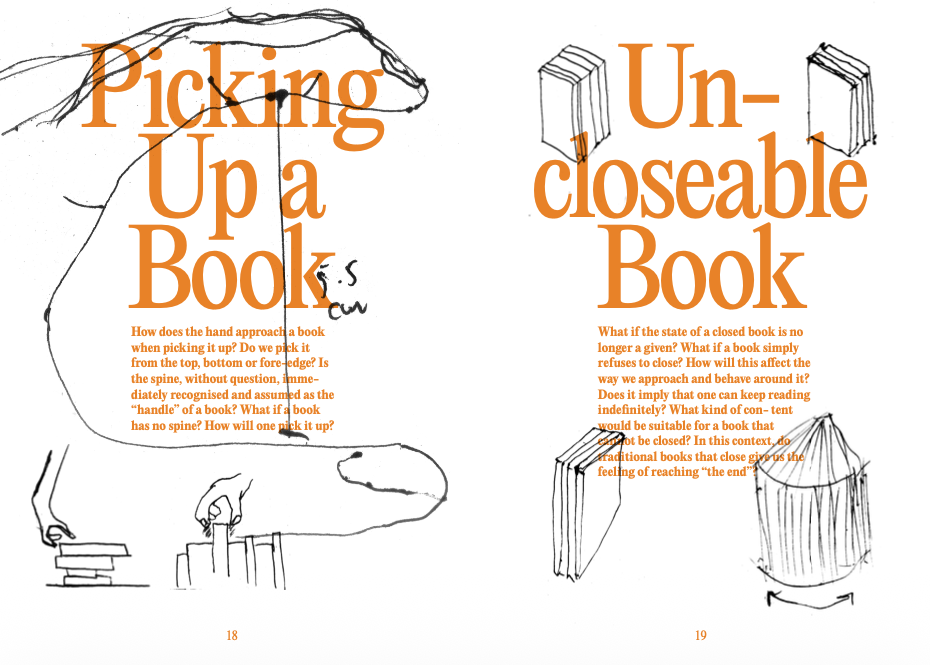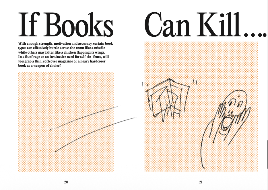 Yes, BOOK! is a risograph zine created in response to Atelier HOKO’s exhibition BOOK?. The exhibition explored the relationship between books and readers, opening up a space to reconsider the act of reading and the materiality of media around the question, “What is a book?” By experimenting with how books and readers encounter one another in space, the exhibition ultimately demanded an answer from the material and sensory qualities of the book itself.