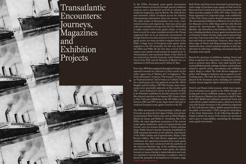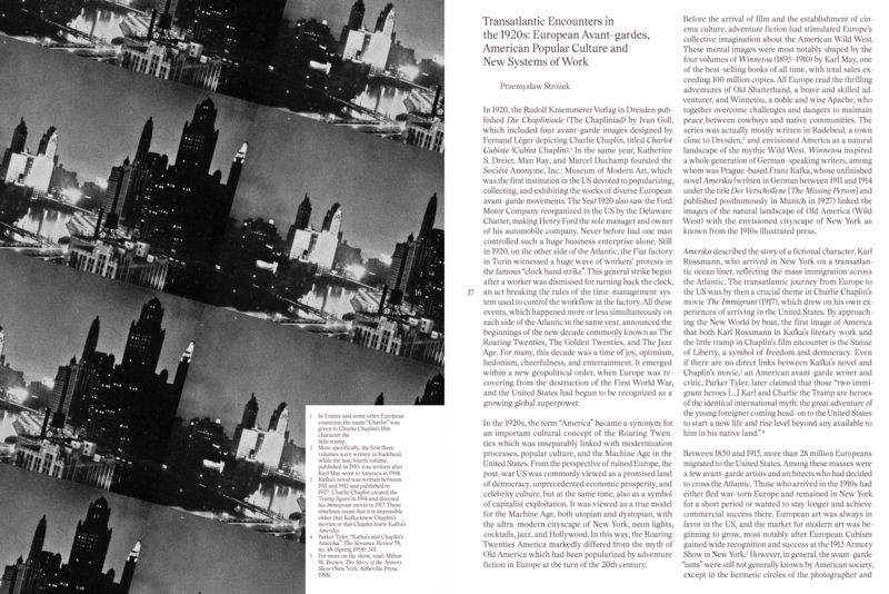 1920년대, 미국과 유럽 사이의 대서양 횡단적 만남은 ‘현대적’이라는 의미 자체를 새롭게 정의했다. 이러한 만남은 ‘아메리카니즘(Americanism)’, 할리우드, 재즈, 포드주의(Fordism), 테일러주의(Taylorism), 기계 시대와 같은 수많은 사회정치적·문화적 현상을 포괄했으며, 상호 영향을 주고받는 복잡한 네트워크 속에서 긴밀히 얽혀 있었다. Modern Times는 유럽의 ‘-주의들’— 미래주의(Futurism), 퓌리즘(Purism), 다다(Dada), 포에티즘(Poetism), 구성주의(Constructivism) — 역시 이러한 현상들과 밀접하게 연결되어 있었음을 보여주며, 이들이 함께 ‘광란의 20년대(Roaring Twenties)’를 형성했음을 드러낸다.