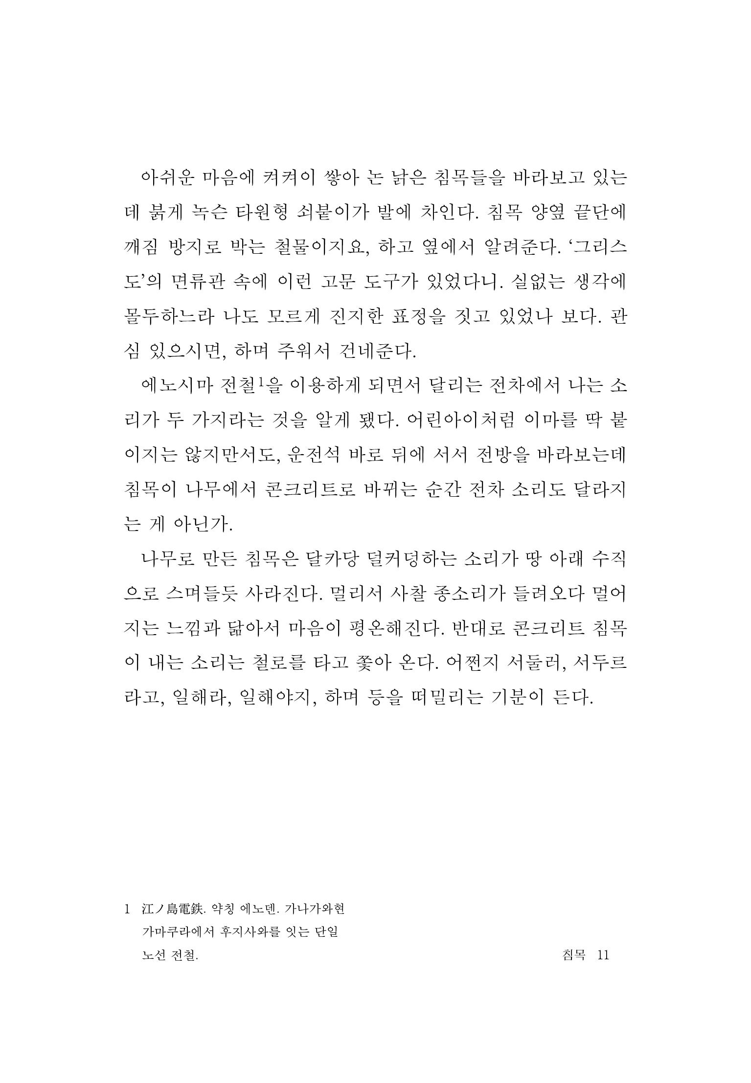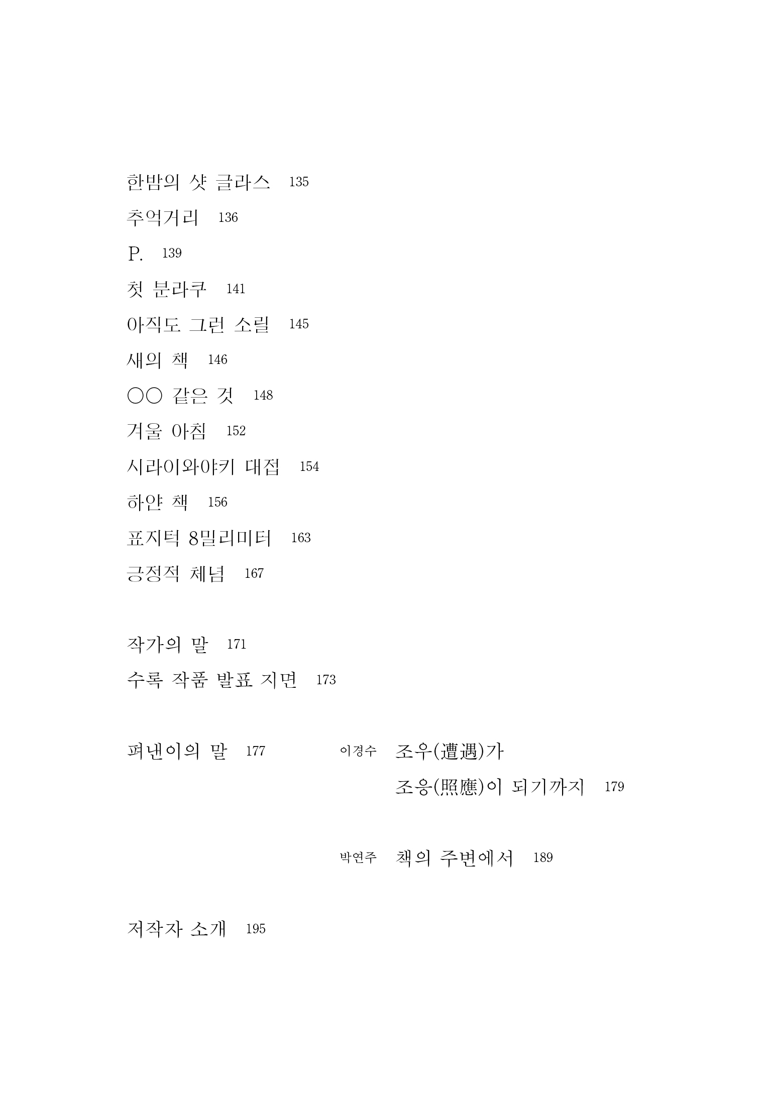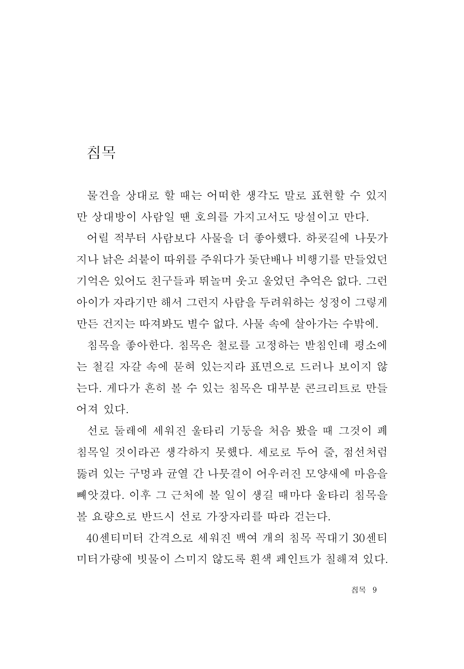 어릴 적부터 사람보다 사물을 더 좋아했다. 하굣길에 나뭇가지나 낡은 쇠붙이 따위를 주워다가 돛단배나 비행기를 만들었던 기억은 있어도 친구들과 뛰놀며 웃고 울었던 추억은 없다. 그런 아이가 자라기만 해서 그런지 사람을 두려워하는 성정이 그렇게 만든 건지는 따져봐도 별수 없다. 사물 속에 살아가는 수밖에. (본문에서)