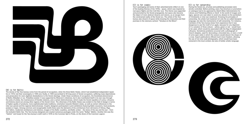 “Tara”는 리투아니아어로 용기 또는 포장재를 의미하며, 1960년대 초 소련 점령 하의 리투아니아에서 설립된 실험 패키지 디자인국(Experimental Package Design Bureau)에서 일하던 그래픽 디자이너들이 자신들의 근무처를 부르던 별명이었다. 이 기관은 현대화 과정, 생산의 성장, 상품 종류의 확대, 소련의 ‘일상 속의 예술(Art for Everyday Life)’ 프로그램, 그리고 냉전의 목적들과 밀접하게 연관되어 있었다. 가장 활발했던 시기인 1964년부터 1984년 사이, 이 디자인국에는 50명이 넘는 디자이너들이 근무하며 리투아니아 일상 제품들의 미학을 만들어냈다. 많은 디자이너들의 이름은 현재 전해지지 않지만, 편집자들의 집중적인 조사 연구를 바탕으로 이들의 작업이 이 종합적인 책 속에서 소개된다. 약 350여 점의 일러스트레이션은 Tara의 서사, 이야기, 정체성을 개념화하는 데 도움이 되는 일종의 용어집 형식으로 독자를 경쾌하게 안내한다.