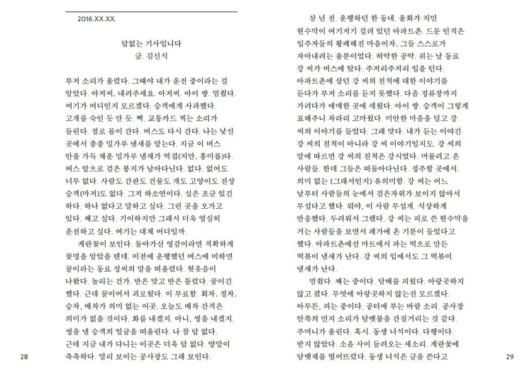 이 문장을 쓰기까지, 조금은 절절했고, 오랜 시간이 지났습니다. ‘답 없음’을 반복과 악몽, 도시의 개발과 재개발, 변두리와 중심, 작가의 불안과 두려움으로 엮어 전시했었고, 타인의 악몽을 수집하여 드로잉과 낱말을 이은 문장으로 손바닥 크기의 <누군가의 노트>를 만들었습니다. 무언가 계속 하고 있는데, 나아지지 않는 기분, 작업과 생활 사이의 고민들. 그래서 작업의 완성을 유예했을 때 보이는 소거된 말들을 찾았지요. 괜찮지 않은데 괜찮다며 지나치는 숱한 순간, 생에 대한 막연한 우울과 불안, 강박, 두려움을 유예하며 미완에 머무르는 몸짓을 책으로 엮었습니다.