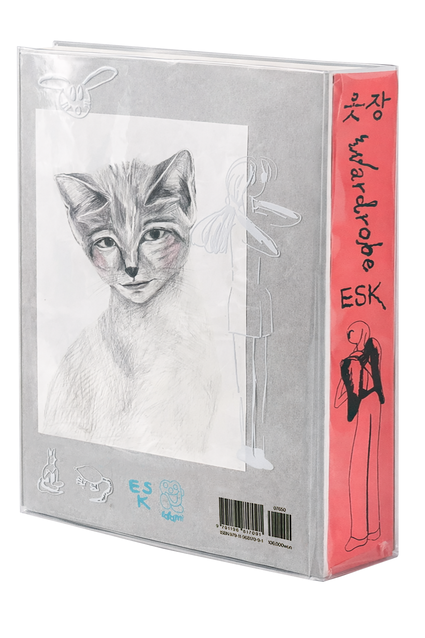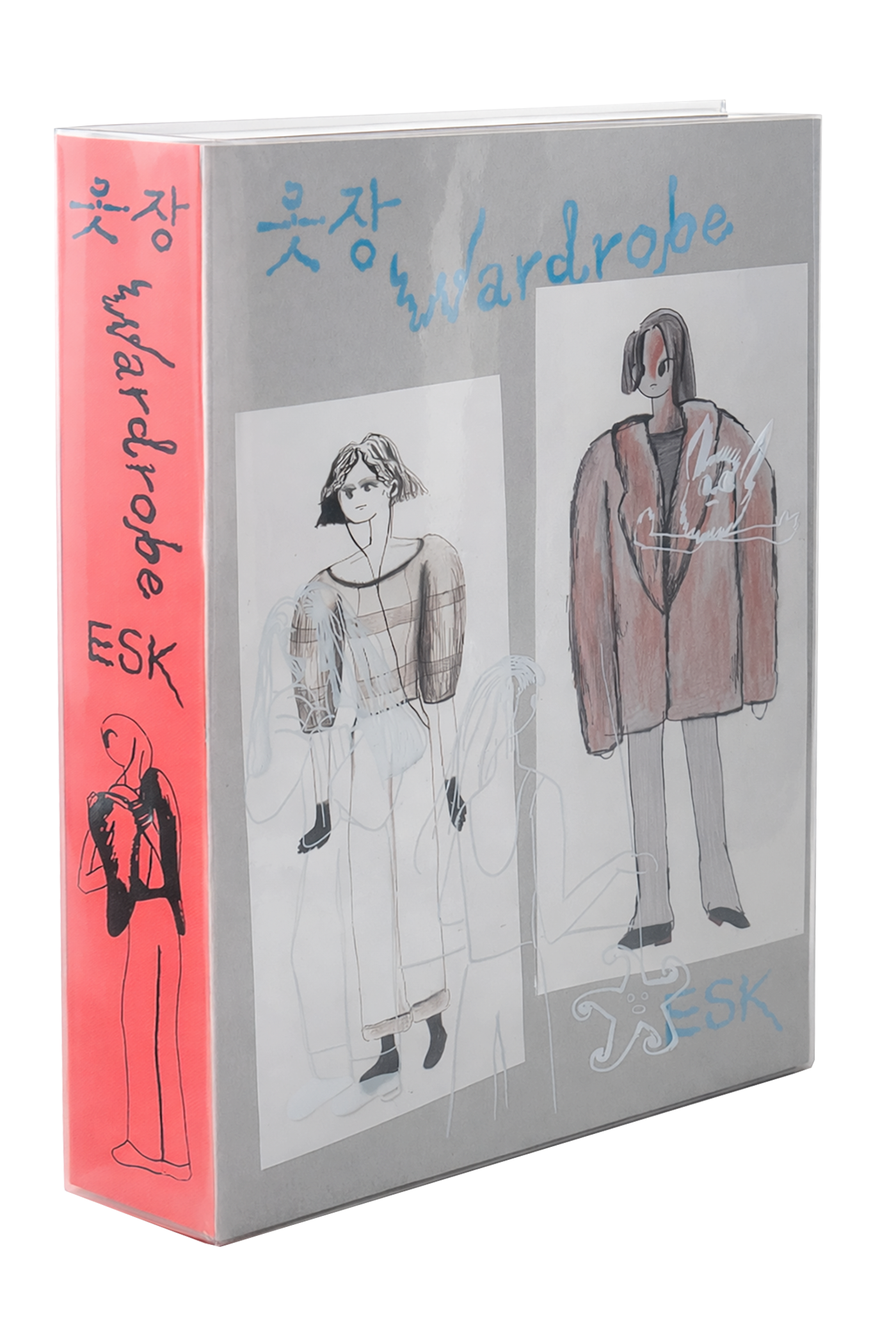 ESK가 2006년부터 지금까지 그린 약 900장의 그림을 한 권에 모았다. 『옷장』은 큼직한 판형의 그림책으로, 한 장씩 넘기는 동안 두 시간 남짓 즐거운 탐색이 이어진다. 낙서, 일러스트, 드로잉, 회화, 조각·설치를 위한 스케치와 에스키스까지—서로 다른 맥락에서 태어난 이미지들이 빽빽하게 걸려 있다.