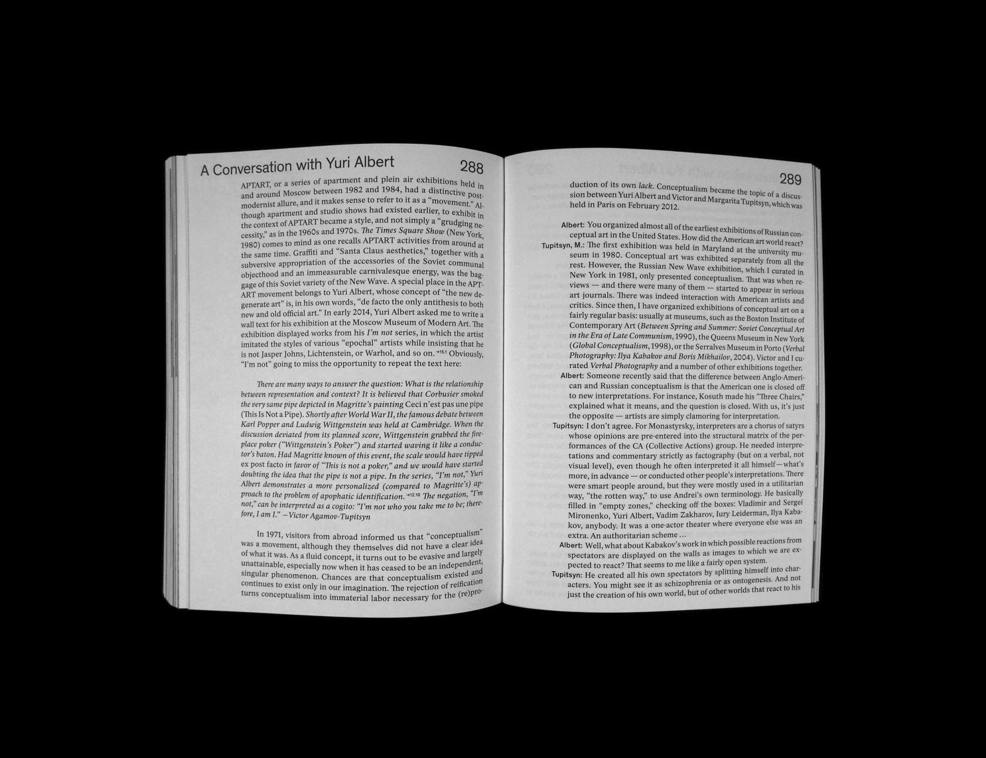 In the Soviet era Victor Tupitsyn had already begun making recordings in Moscow kitchens and studios of conversations with Russian conceptual artists. They were intended for readers who had no access to these artists, as their work ran foul of official conceptions of art in the Soviet Union and were not shown in exhibitions. Today Russian conceptualism is considered as one of the most influential art tendencies of the late twentieth century. Like many other Russian intellectuals