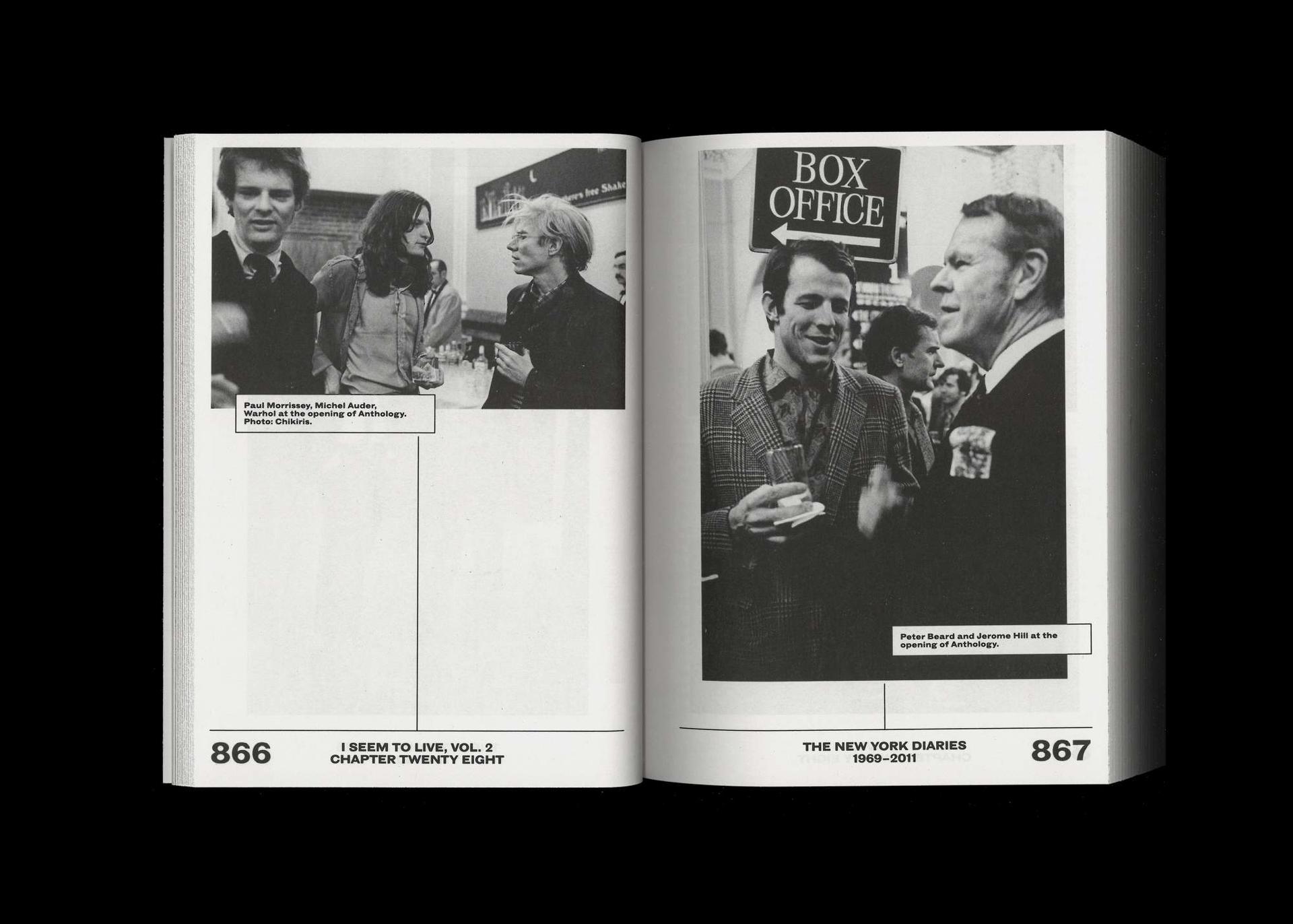 The second volume of Jonas Mekas’s autobiography I Seem to Live. The New York Diaries, 1969–2011 continues with the meticulous description of his dense life in New York’s underground art scene. It begins with the seventies, a time when the Chelsea Hotel was a central hub of creativity and a temporary home for the filmmaker and critic. In 1970, Mekas cofounded Anthology Film Archives with Jerome Hill, P. Adams Sitney, Peter Kubelka, and Stan Brakhage. Later, he bought the Courthouse building at 32 Second Avenue where Anthology remains today. Jonas Mekas finished editing his autobiography’s last volume when he was over ninety years old. Published posthumously, I Seem to Live. The New York Diaries, 1950–2011 stands on an equal footing with his cinematic oeuvre. The second and concluding volume of his diaries, contains an extensive index of names