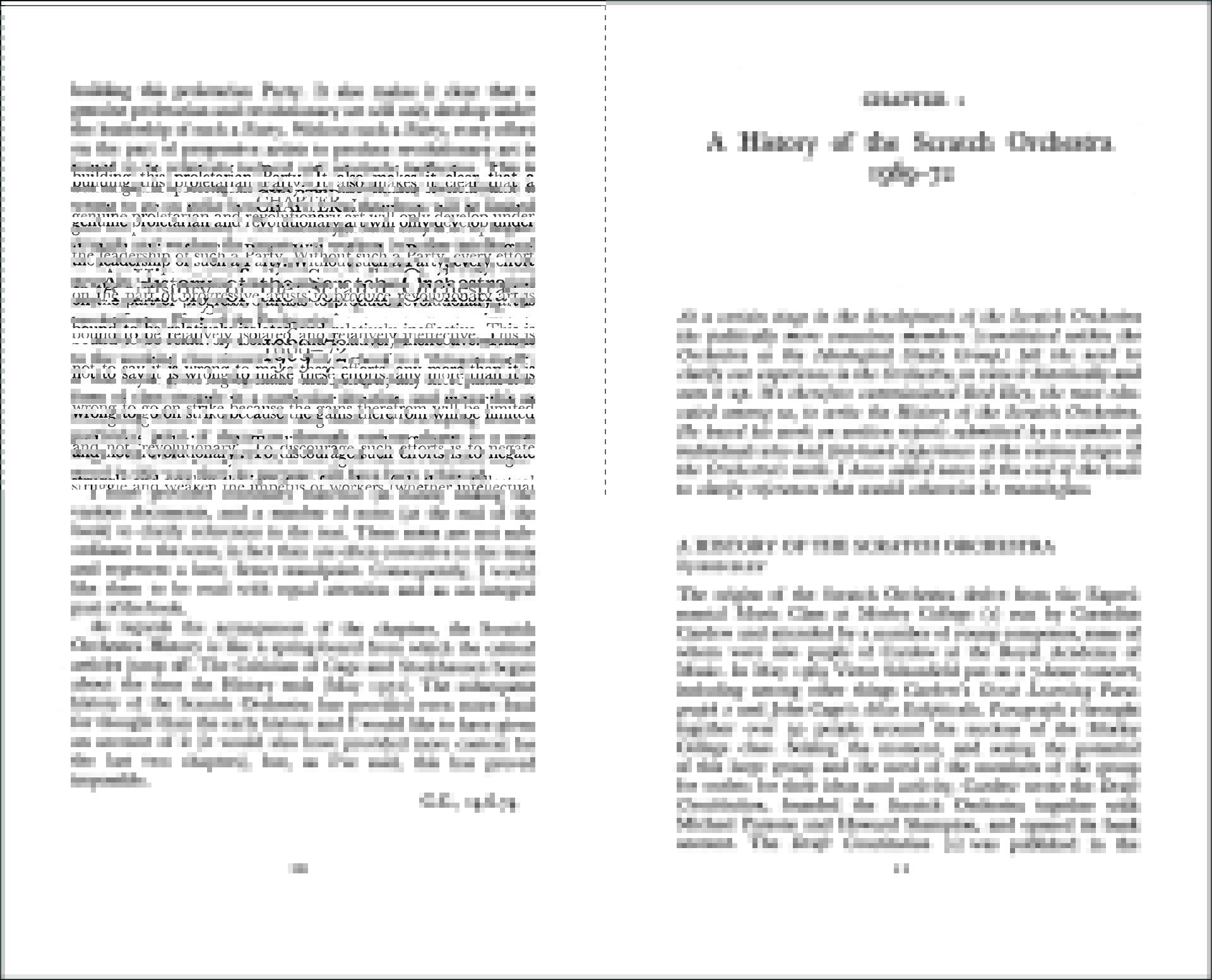 The author also provides constructive criticism of his contemporaries Christian Wolff and Frederic Rzewski for utilizing politically progressive content, yet failing to work in a musical form that would appeal to the proletariat. Cardew’s music does not escape his own scrutiny: the book contains critiques and repudiations of his canonical compositions from the 1960s and early 1970s, Treatise and The Great Learning. Complimenting Cardew’s essays are writings by Rod Eley, who contributes “A History of the Scratch Orchestra,” and John Tilbury, who contributes an “Introduction to Cage’s Music of Changes.”