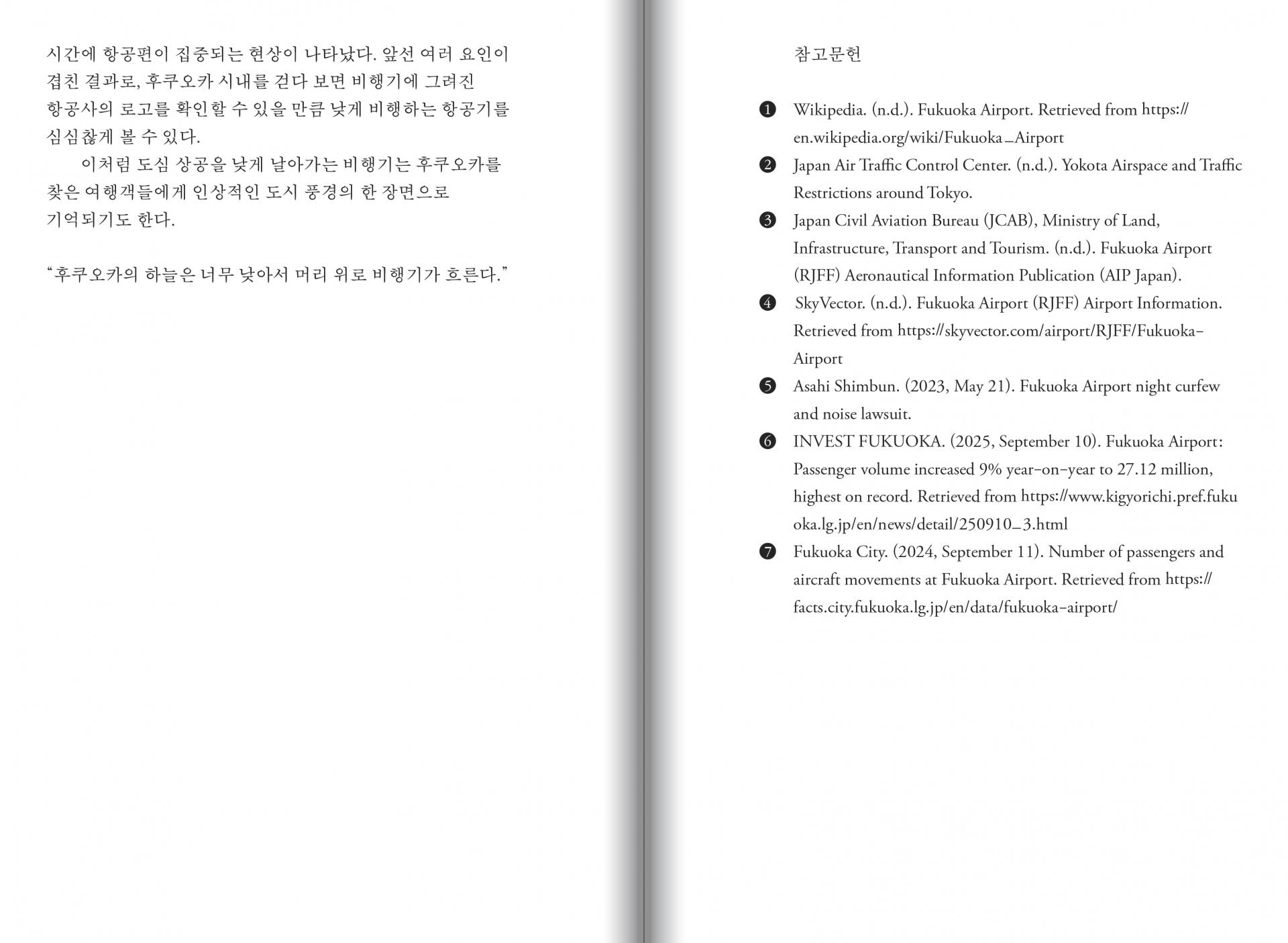 항공사의 로고를 구별할 수 있을 정도로 낮게 나는 비행기의 모습은 그 자체로 후쿠오카라는 도시의 이미지를 구성하는 하나의 작은 패턴이 될 수 있겠다고 생각해 시작한 작업이다.